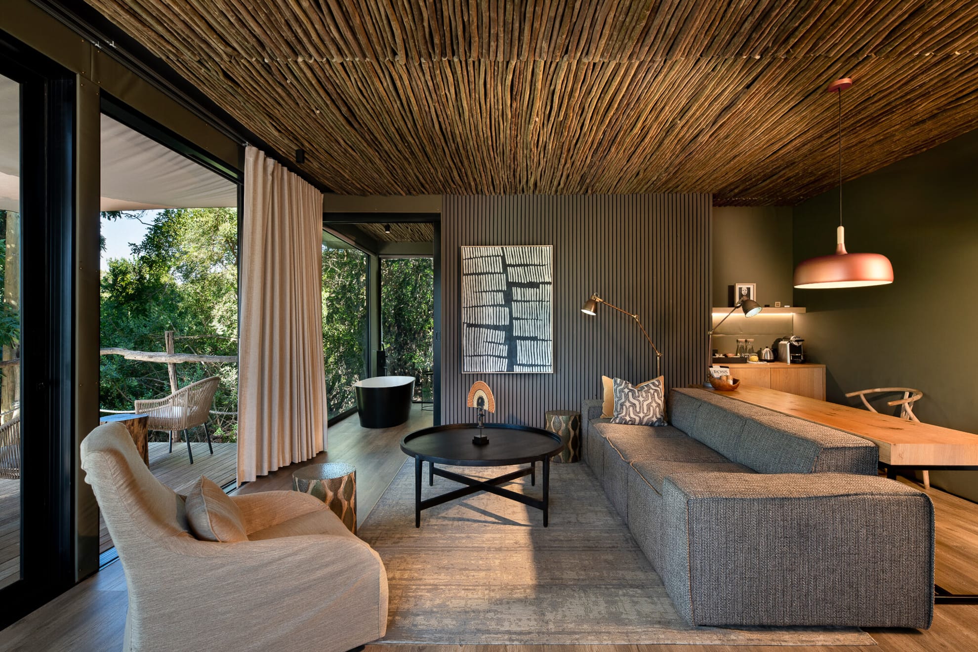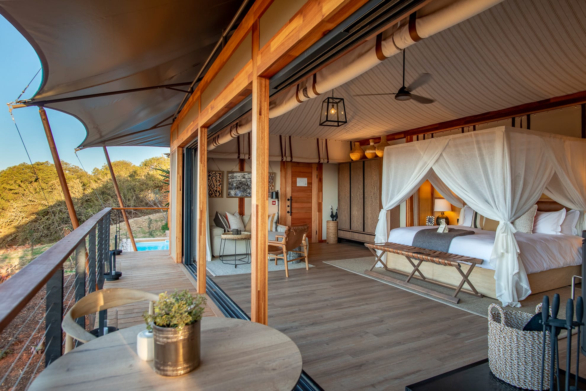 - Bayethe Lodge: un santuario de integración total. Sus 12 tiendas actualizadas combinan vidrio y lona con elementos contemporáneos, ofreciendo máxima privacidad y una nueva suite elevada que se pierde entre el follaje.