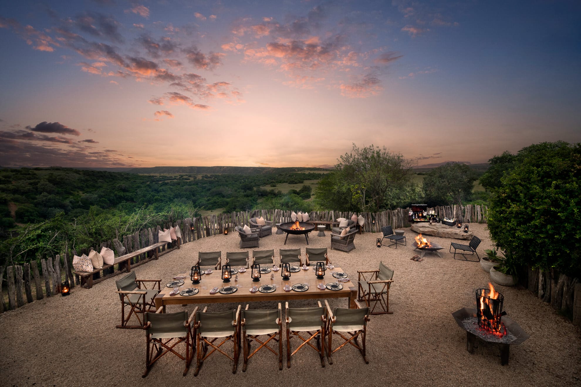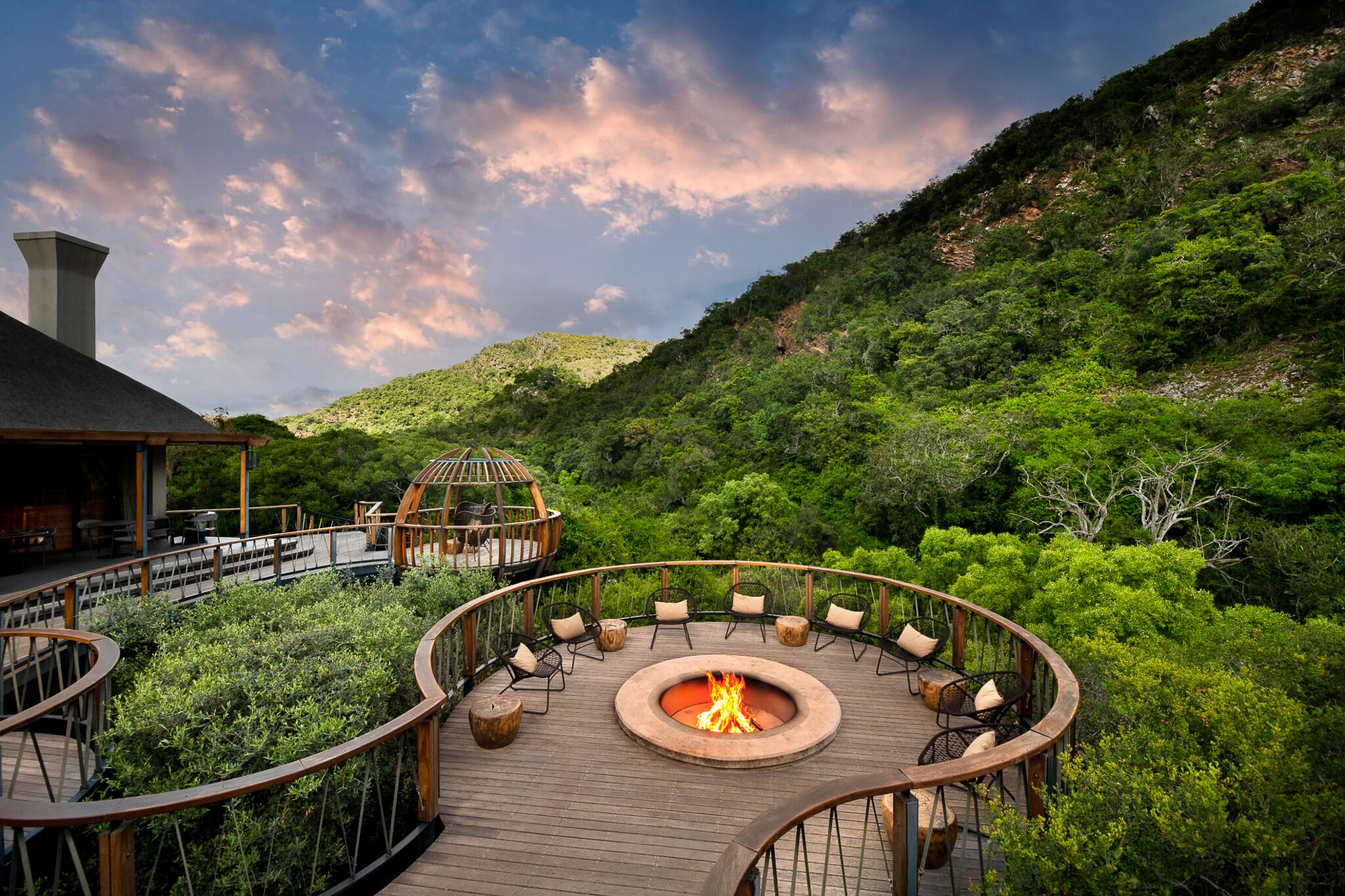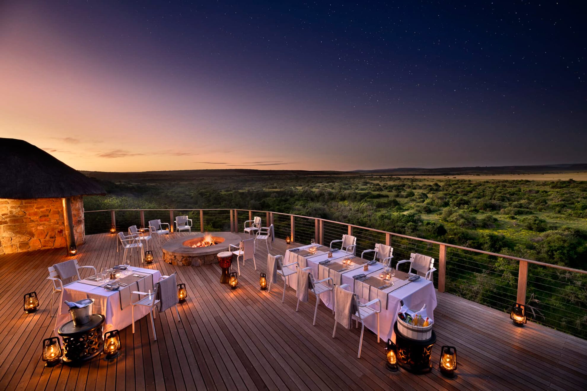 - Eagles Crag: escondido en un valle aislado, este refugio íntimo de piedra y techo de paja ofrece suites románticas con “pods” de comedor tejidos en mimbre, creando un escenario arquitectónico único para cenas privadas.
