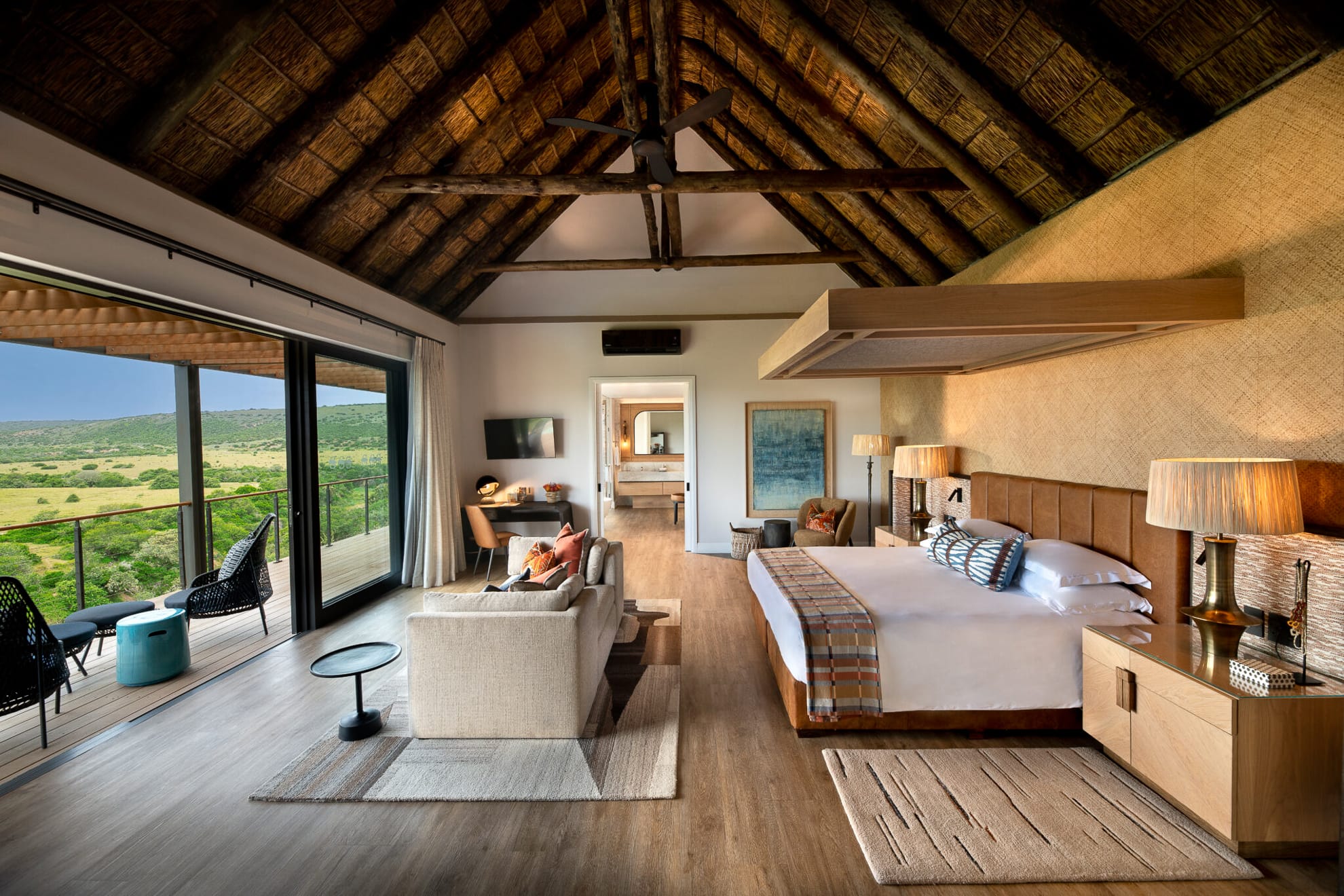 - Riverdene Family Lodge: con una estética de “granero moderno”, este lodge libre de malaria es el refugio ideal para familias, destacando por sus cerchas expuestas, iluminación industrial y vistas panorámicas al campo circundante.